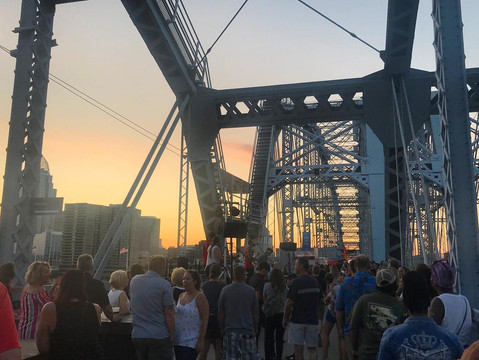 Every Wednesday in the summer, ColdIron Events produces the Party on the Purple. A portion of the proceeds from each event goes to repainting and repairing the bridge. The bridge comfortably holds a large crowd, multiple food trucks, a live band, beer booths, and more! There's also a perfect view of the Reds' Fireworks at night.